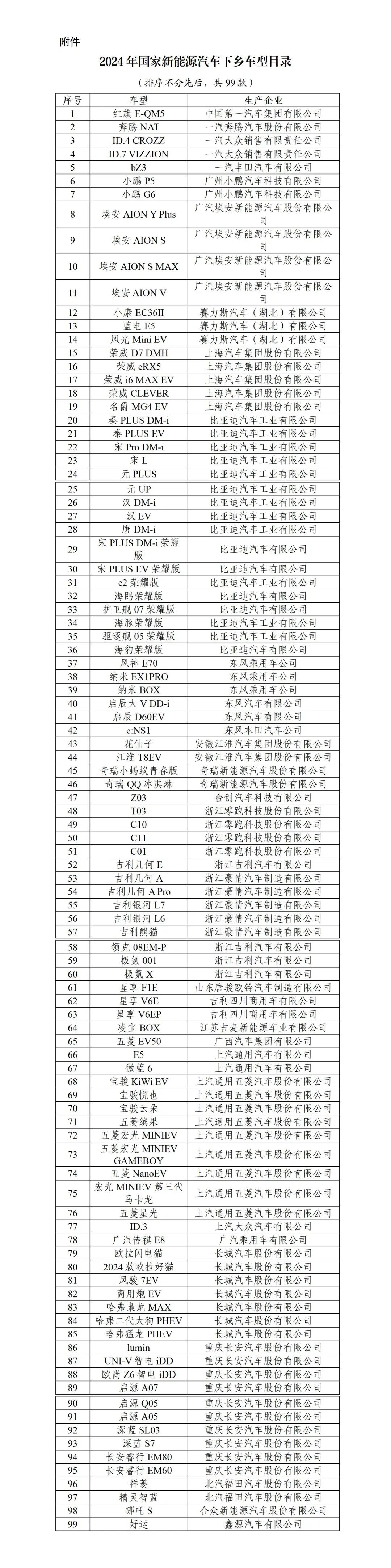 附件:1.2024年国家新能源汽车下乡车型目录