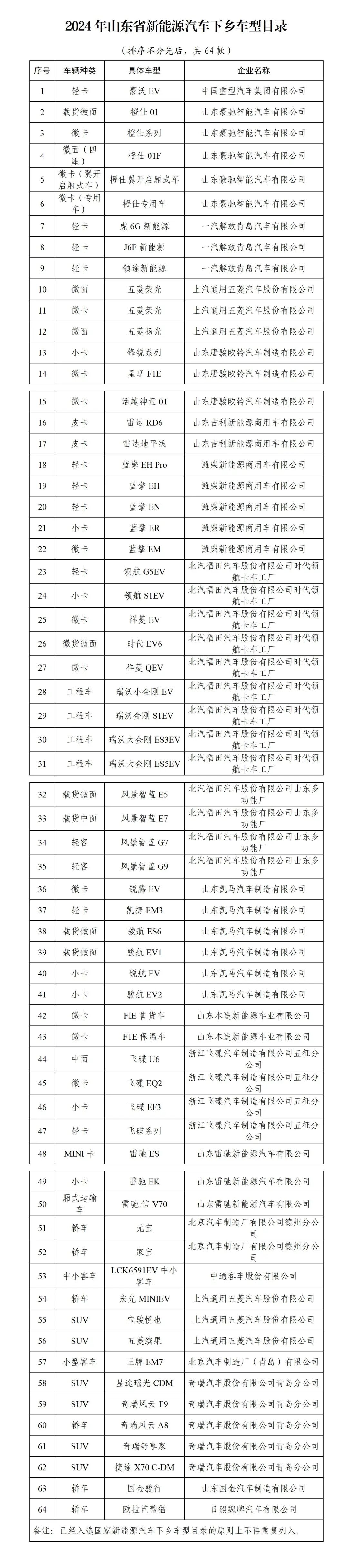 2.2024年山东省新能源汽车下乡车型目录
