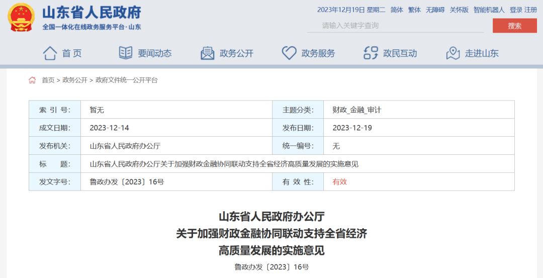 真金白银支持!山东出台实施意见,加强财政金融协同联动支持全省经济高质量发展
