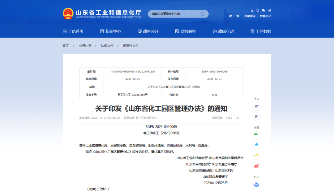 第一条 为进一步加强和规范化工园区、专业化工园区(以下简称“园区”)管理,根据《化工园区建设标准和认定管理办法(试行)》(工信部联原〔2021〕220号)、《山东省化工园区扩区管理办法(试行)》(鲁政办字〔2022〕118号)等文件规定,制定本办法。