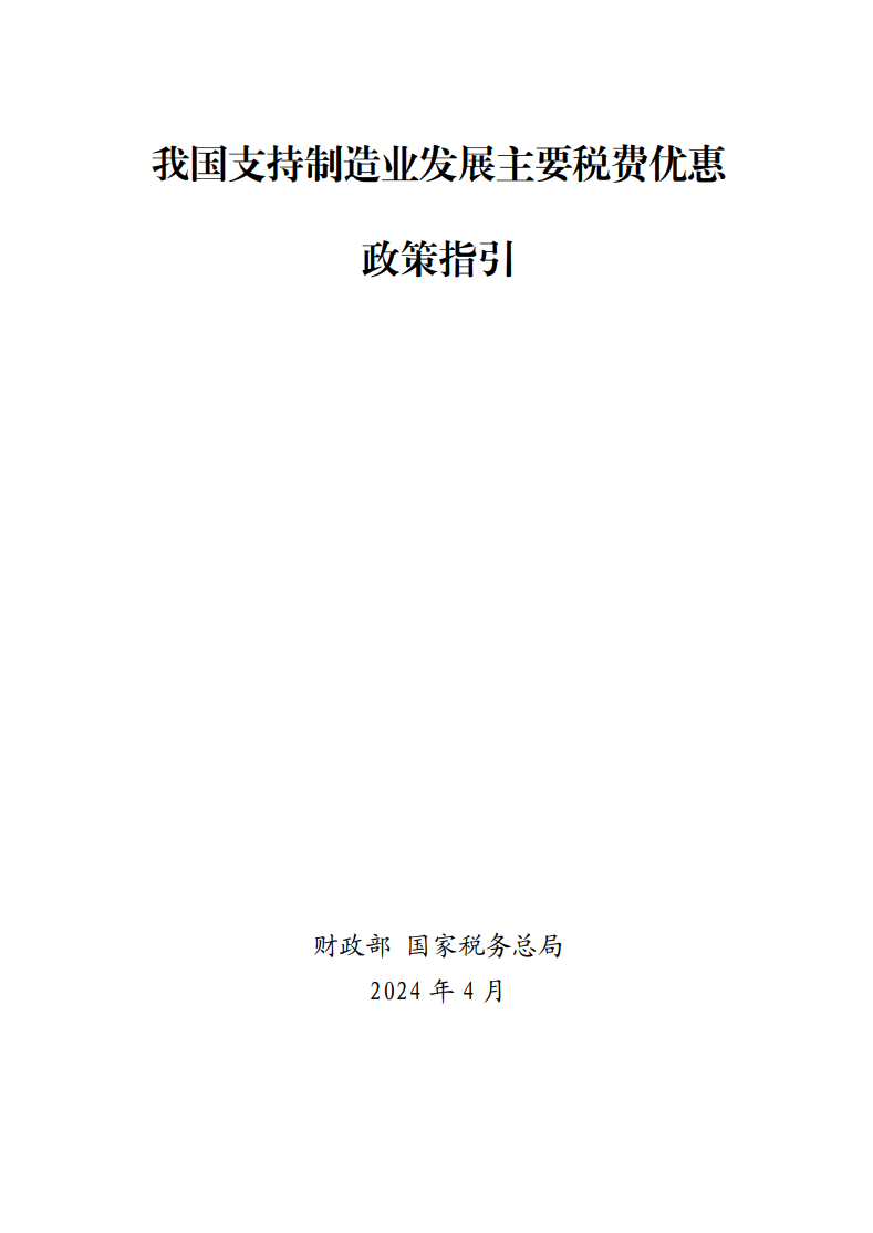 近日,财政部、国家税务总局编写了《我国支持制造业发展主要税费优惠政策指引》。指引包括专项类和普惠性、区域性政策共31项,每项政策详细列明享受主体、享受内容、享受时间、享受条件、申报时点、办理材料、享受方式、政策依据、政策案例等9方面内容。
