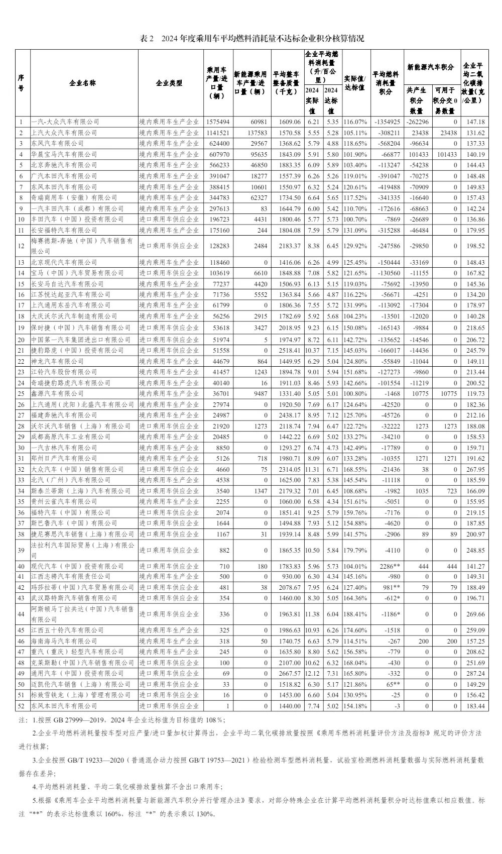 附件:2024年度中国乘用车企业平均燃料消耗量与新能源汽车积分核算情况表