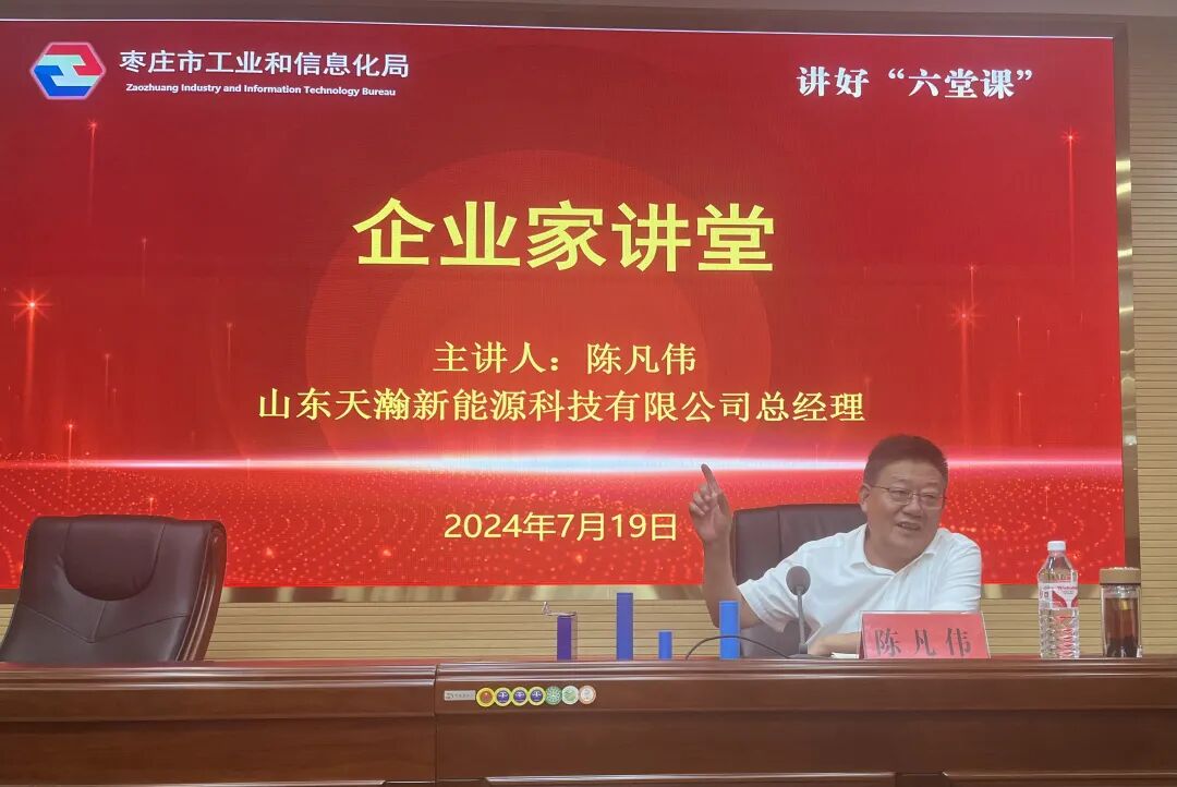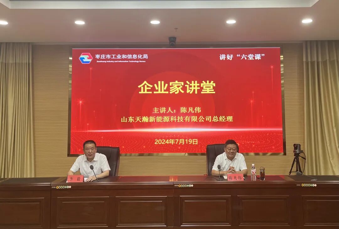 7月19日,市工信局在市政大厦316会议室举办企业家讲堂,邀请山东天瀚新能源科技有限公司总经理陈凡伟作《锂电行业的发展及展望》讲座,市工信局机关全体人员参加。