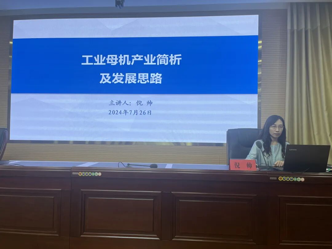 四级调研员、科技装备科科长倪帅作《工业母机产业简析及发展思路》专题授课,详细介绍了工业母机概念和分类、工业母机产业发展现状以及差距不足,对国家、省、市工业母机专项政策进行了解读,并从做大机床产业规模、增强企业创新能力、加大人才引育力度、助力企业市场开拓4个方面,阐述了下一步推动工业母机产业高质量发展的工作思路。