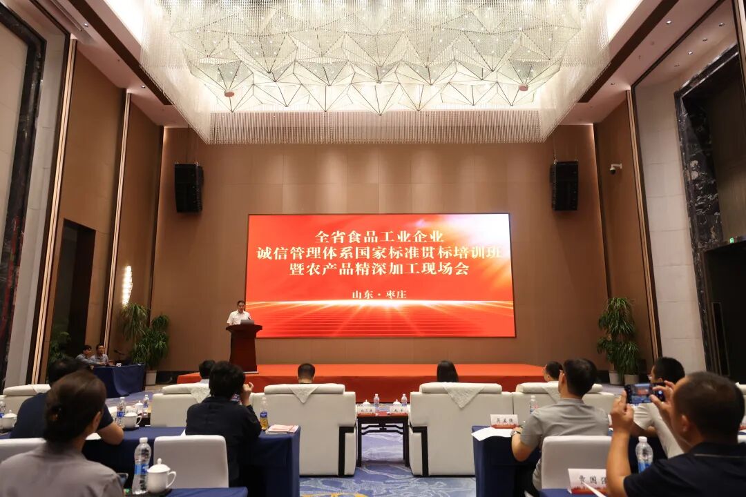 9月11日-12日,全省食品工业企业诚信管理体系国家标准贯标培训班暨农产品精深加工现场会在枣庄举办。省工业和信息化厅消费品产业处处长赵宇出席并讲话,枣庄市工业和信息化局局长杜飞廉致辞,省工业和信息化厅消费品产业处副处长康俊峰主持会议。来自全省各地市工信部门相关负责同志、重点食品企业负责人等100余人参加本次活动。