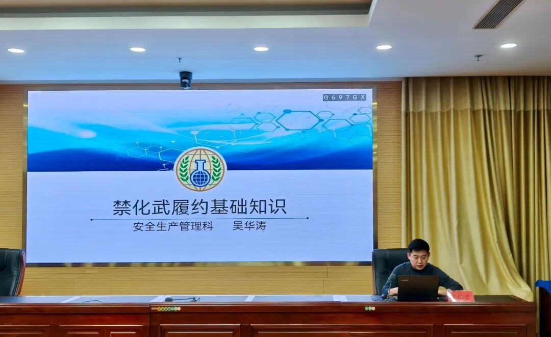 安全生产管理科科长吴华涛作《禁化武履约基础知识》专题授课,详细介绍了《禁止化学武器公约》的由来、禁止化学武器组织以及我国禁化武履约工作的两大重任,并对我市禁化武工作的现状和具体情况进行了介绍。