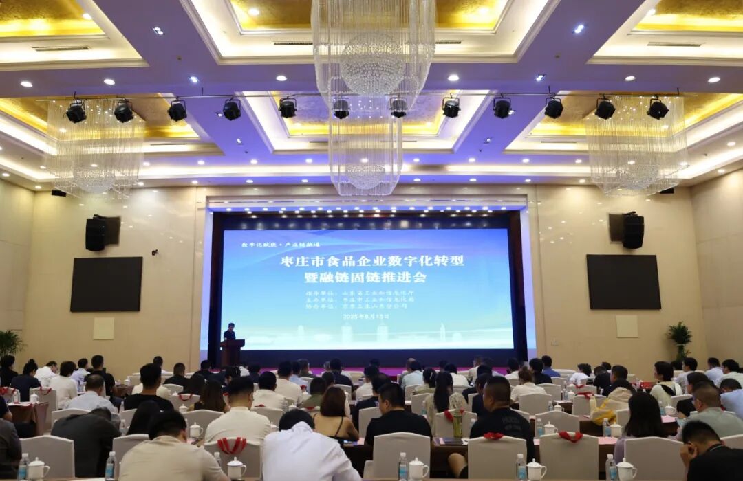 8月15日上午,枣庄市食品行业数字化转型暨融链固链推进会议在开元凤鸣山庄成功举办。本次会议由省工信厅指导、市工信局主办、京东工业山东分公司协办。省工信厅二级巡视员李英峰、市政府副市长张龙江出席会议并分别致辞,市政府办公室副主任刘涛,省工信厅消费品产业处负责同志出席会议。枣庄市工信局党组书记、局长杜飞廉同志主持会议。全市110家食品行业及配套企业负责人,浙江大学未来食品研究院、京东工业、有关数字化转型服务商、金融机构以及各区(市)工信局、枣庄高新区经发局分管负责同志参加会议。
