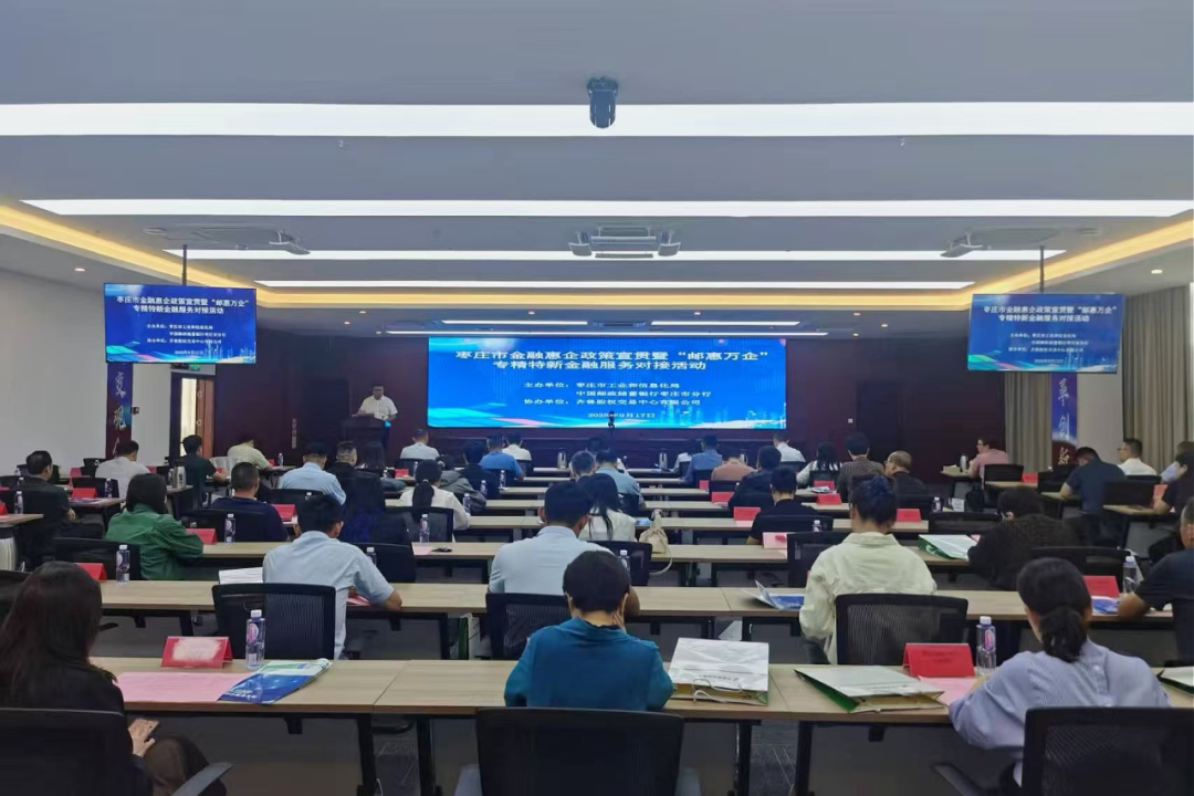 9月17日上午,金融惠企政策宣贯暨“邮惠万企”专精特新金融服务对接活动在中国邮政储蓄银行枣庄市分行成功举办。本次活动由市工业和信息化局、中国邮政储蓄银行枣庄市分行主办,齐鲁股权交易中心有限公司协办。市工业和信息化局党组成员、副局长王家贺,中国邮政储蓄银行枣庄市分行党委委员、副行长孙立秋,齐鲁股权交易中心有限公司总经理助理杨雪华出席活动,我市42家有融资需求的专精特新企业、标准厂房建设企业负责同志,市工业和信息化局有关科室负责同志,各区(市)工信部门、邮储银行分管负责同志和业务负责同志参加活动。