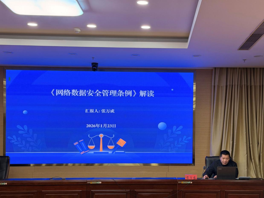 工业互联网科张万成同志作《网络数据安全管理条例解读》专题授课,系统梳理了《条例》的立法背景与历程、在法律中的定位与总体框架,深入解读了“网络数据”“重要数据”“大型网络平台”等重要概念,并结合典型案例,对数据分类分级、个人信息保护、重要数据安全管理等核心条款进行了细致阐释。