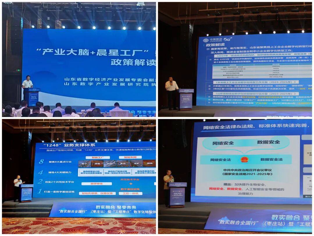 山东数字产业发展研究院执行院长安章作山东省“产业大脑+晨星工厂”数实融合新模式政策解读。山东移动工业能源行业专家李鹏、山东浪潮智能生产技术有限公司解决方案部总经理左修玉、启明星辰信息技术集团股份有限公司霍瑞兵分别围绕新型信息服务体系、智能制造、网络安全等议题作主题演讲。晟达菲尔大健康产业(山东)有限公司围绕企业数智化建设作经验分享。