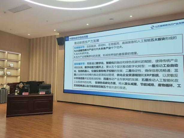 本次培训采取“专题授课+现场观摩”相结合的形式,旨在通过理论引导与实践体验,助力企业厘清转型思路、掌握实施路径。活动邀请山东省信息技术产业发展研究院总质量师、省两化融合评测中心主任石秀芳进行专题授课。石主任围绕《推进企业数字化转型助力新型工业化发展》主题,系统解读了数字化转型内涵、实施路径与评估标准,为企业提供了清晰可操作的行动指南。