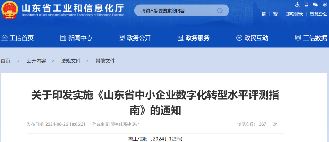 关于印发实施《山东省中小企业数字化转型水平评测指南》的通知